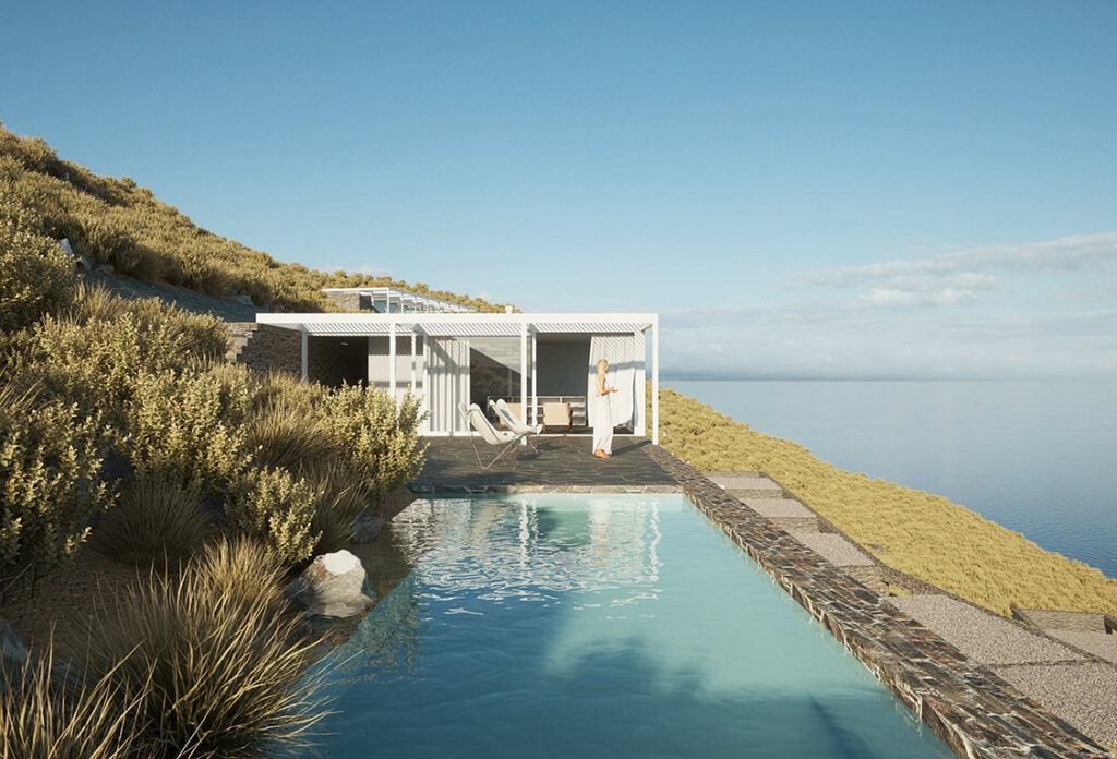 Landscapes is an operator aiming to become synonymous with the highest level of service exclusive to beautiful landscapes in Greece. Landscapes Kéa being the first investment under development. A treat for sun-soaked joy and relaxation, the Landscapes Kéa project is a unique offering of experiences, designed in absolute accord to its location, and guests. The site is within easy reach to entertainment, gastronomy, sailing, swimming, and cultural hotspots and boasts uncompromised views to the Aegean Sea. The project comprises of 17 bespoke units ranging from 30 to 40m2 with private terrasses and jacuzzis or pool which can be combined to larger suites offering true ultra-luxury. Other retreat exclusive amenities include a gourmet restaurant managed by celebrated chefs, an events space, outdoor lounge areas and a yoga pool. Movement is serviced by golfcarts.